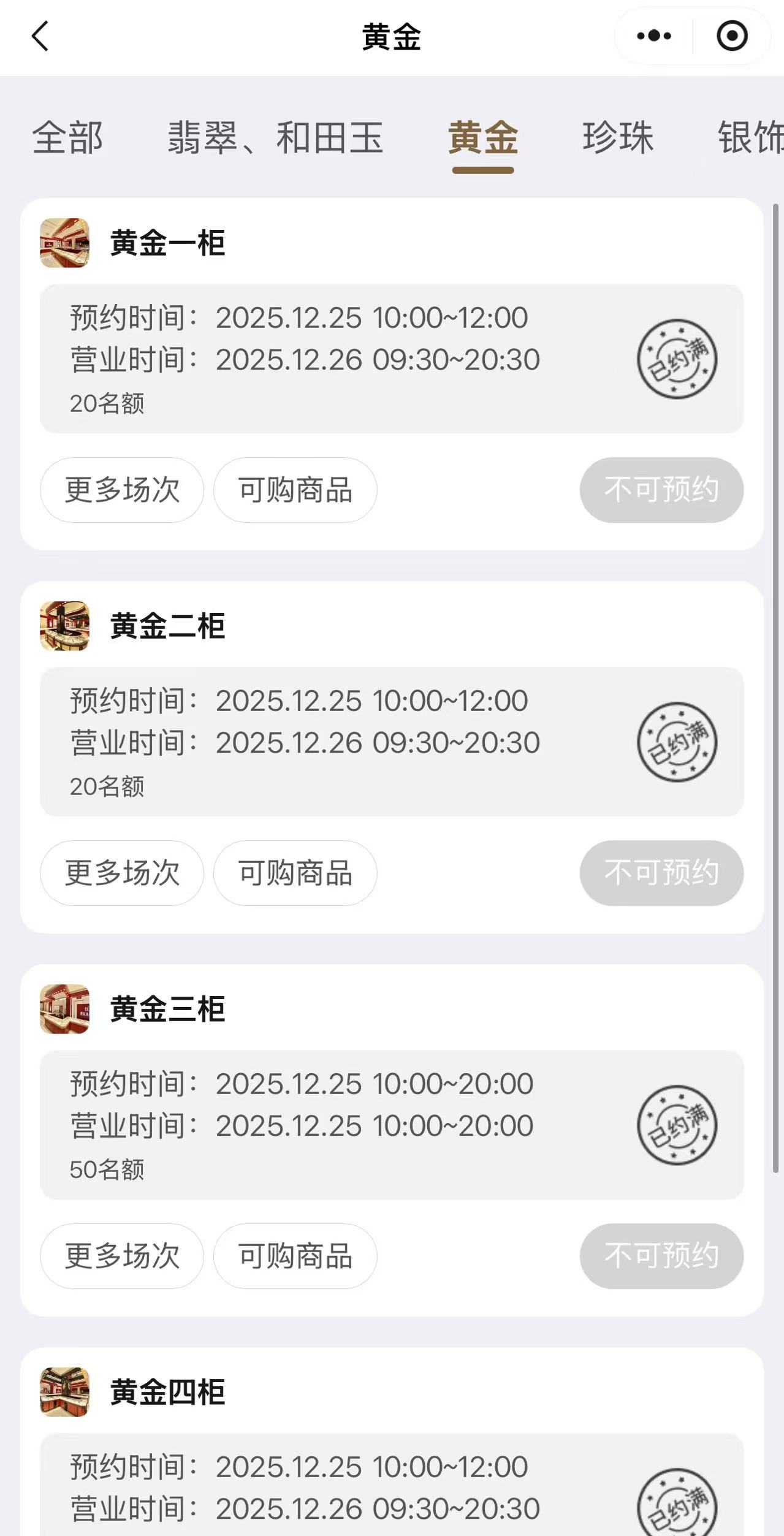 随着客流激增,胖东来珠宝黄金区域已全面实行预约购买制度。每日上午9点首批发放50个预约号,“早上第一批预约号不到10秒就没了。”一位顾客告诉记者,预约须通过微信小程序“胖东来珠宝”在商场200米范围内进行,且仅限当日。该区域按品类分为五个柜台,涵盖古法金饰、婚庆系列、硬金饰品等不同类别。